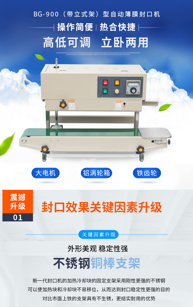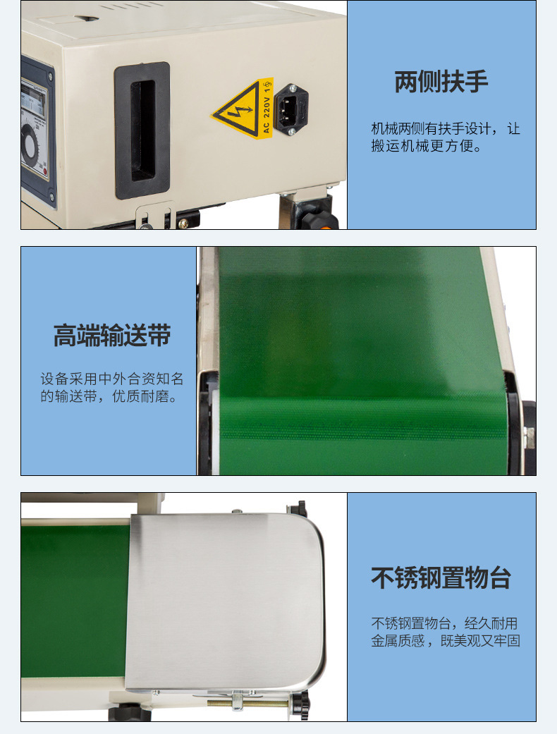 立式連續式封口機所封袋口平整光滑、密封性良好,封口牢固,降低產品運輸途中泄露、變質風險。