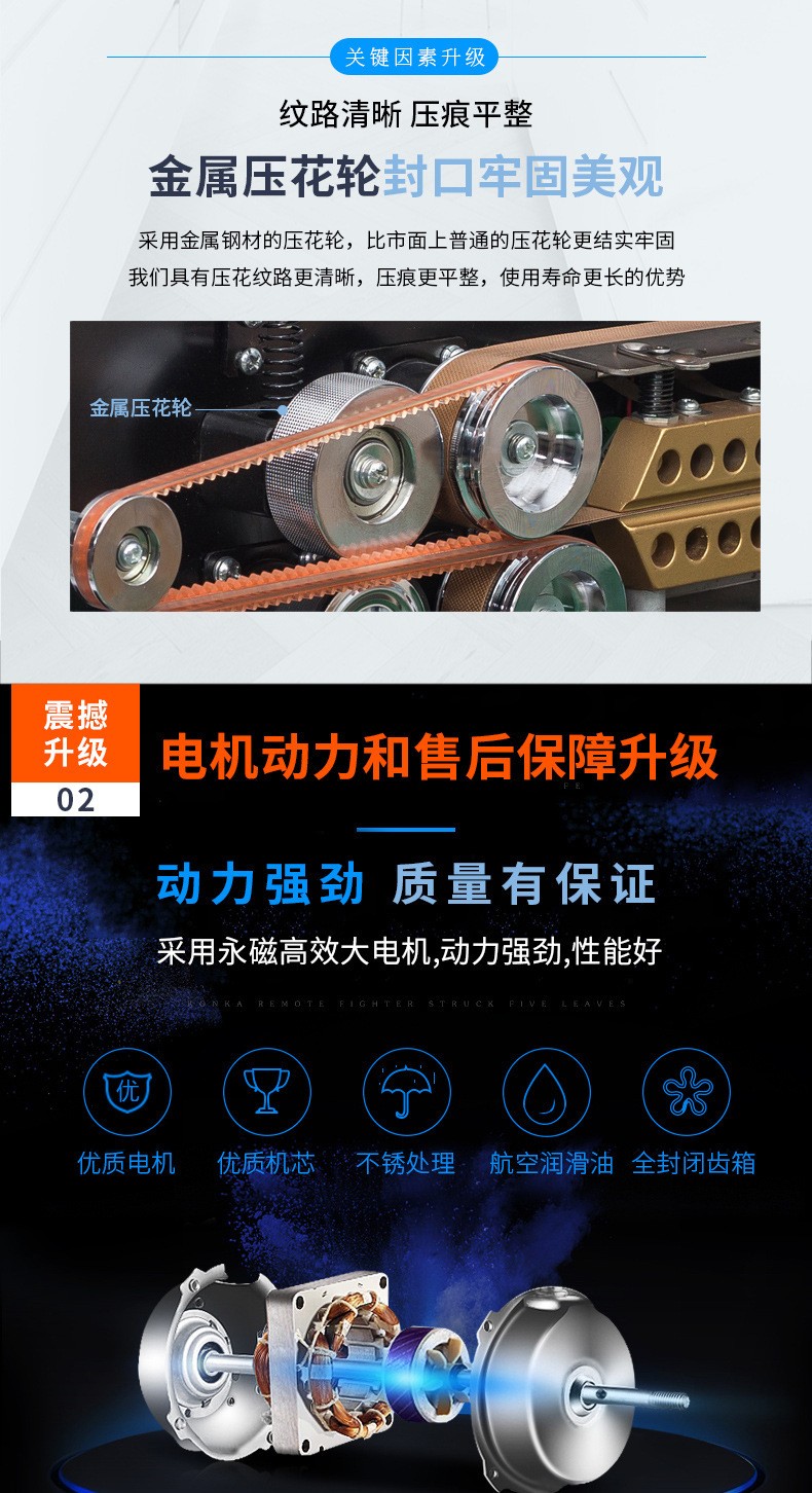 • 適用范圍廣:可以處理不同材質、尺寸、厚度的包裝袋,從薄如蟬翼的保鮮膜袋到多層復合的防潮、阻氧包裝袋,只要調整好相應參數,都能出色完成封口任務。