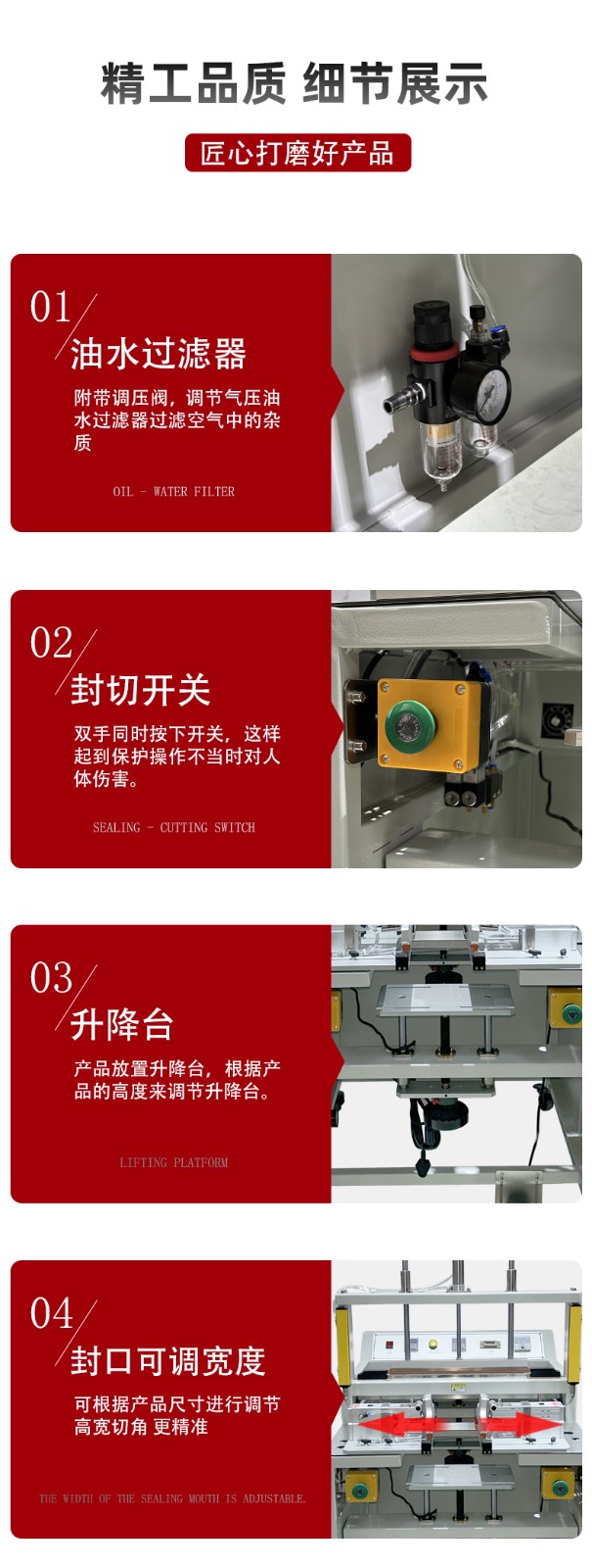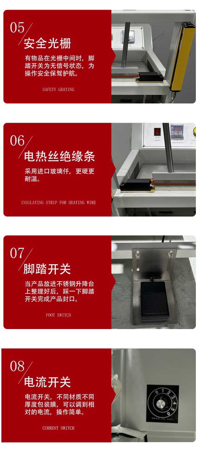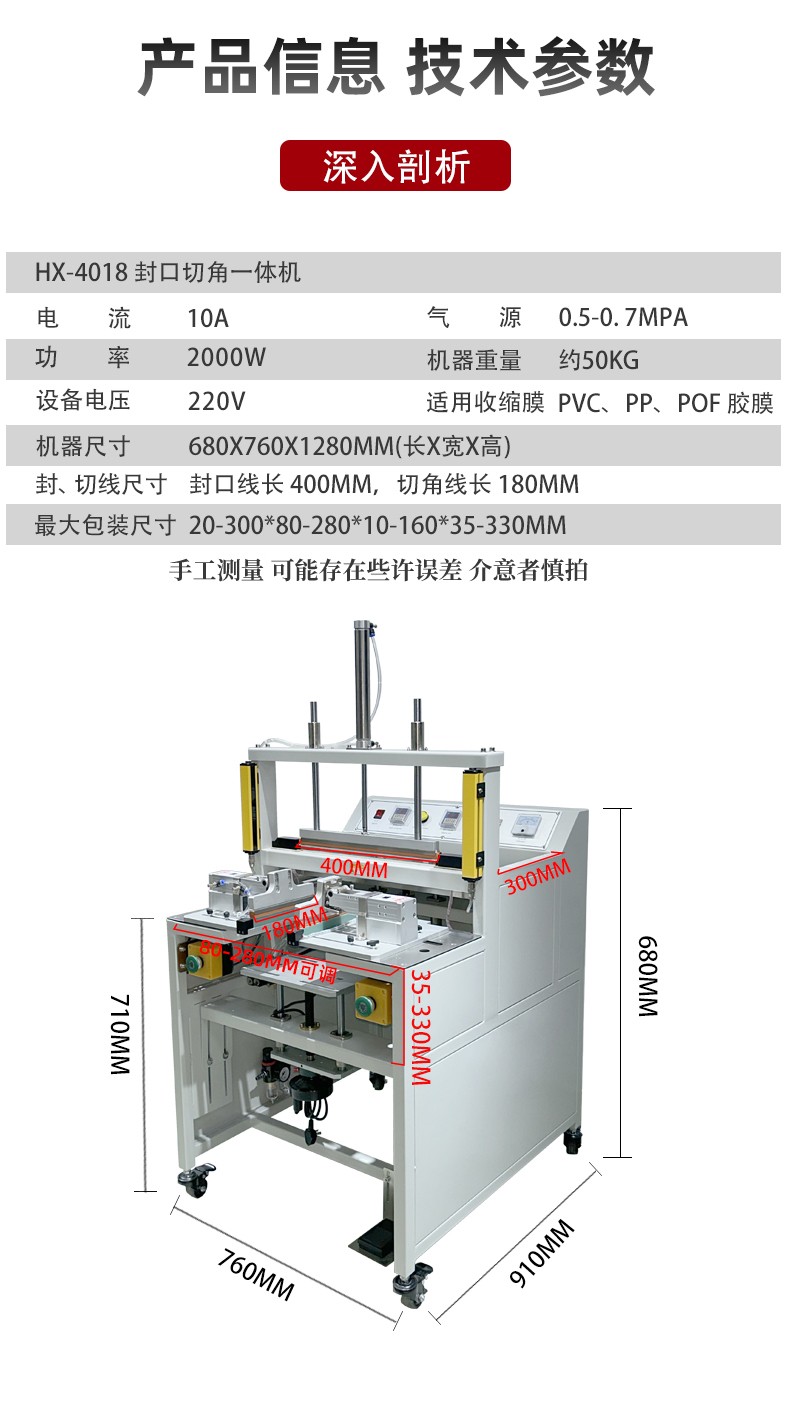 - 封口質量:如果在封口過程中,無論怎么調整加熱時間、溫度等參數,封口處的塑料薄膜始終無法達到理想的封口效果,如封口不牢固、有氣泡、封口處薄膜易撕裂等,可能是加熱管的加熱能力下降,無法提供足夠的熱量使薄膜達到良好的融合狀態(tài)。