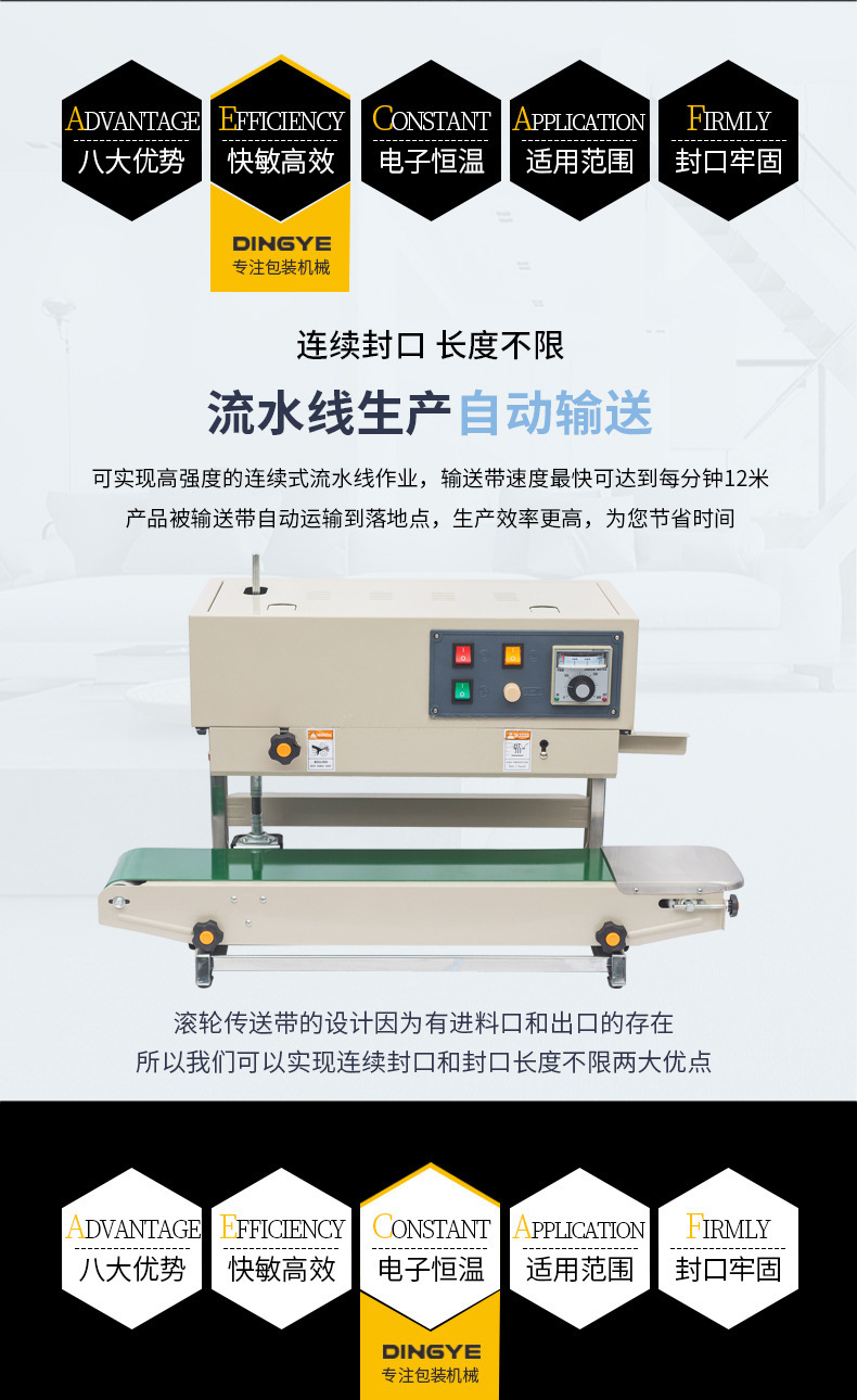 立式封口機可用于各種尺寸的包裝袋,尤其是大型包裝袋的封口作業,如大米、面粉、狗糧等大包裝產品,也適用于液體、粉末、重物等不同類型物料的包裝封口