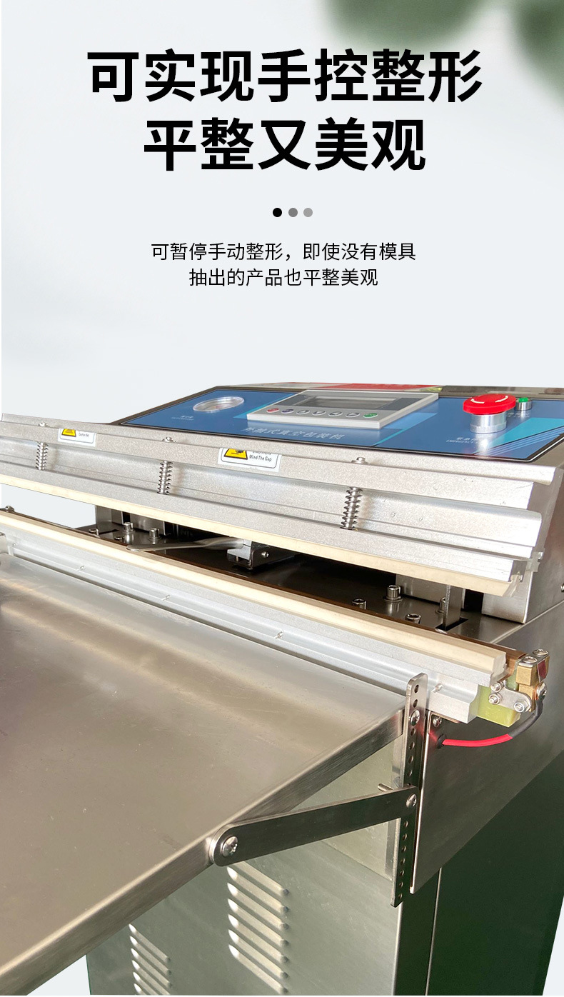 - 自動化程度高:操作簡便,只需在觸摸式人機界面顯示屏上輸入相關(guān)參數(shù),機器即可自動完成抽真空、充氣、封口等一系列包裝工序,并隨機顯示自動工作狀態(tài),具有中文顯示故障內(nèi)容功能,便于操作人員進行操作和維護1。