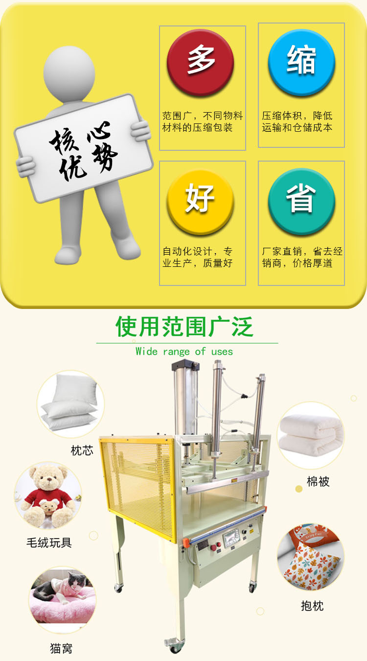 • 高效壓縮:能快速有效地壓縮蓬松物品,如羽絨被服、枕頭等,大大縮小包裝體積,減少儲存空間和運輸成本1