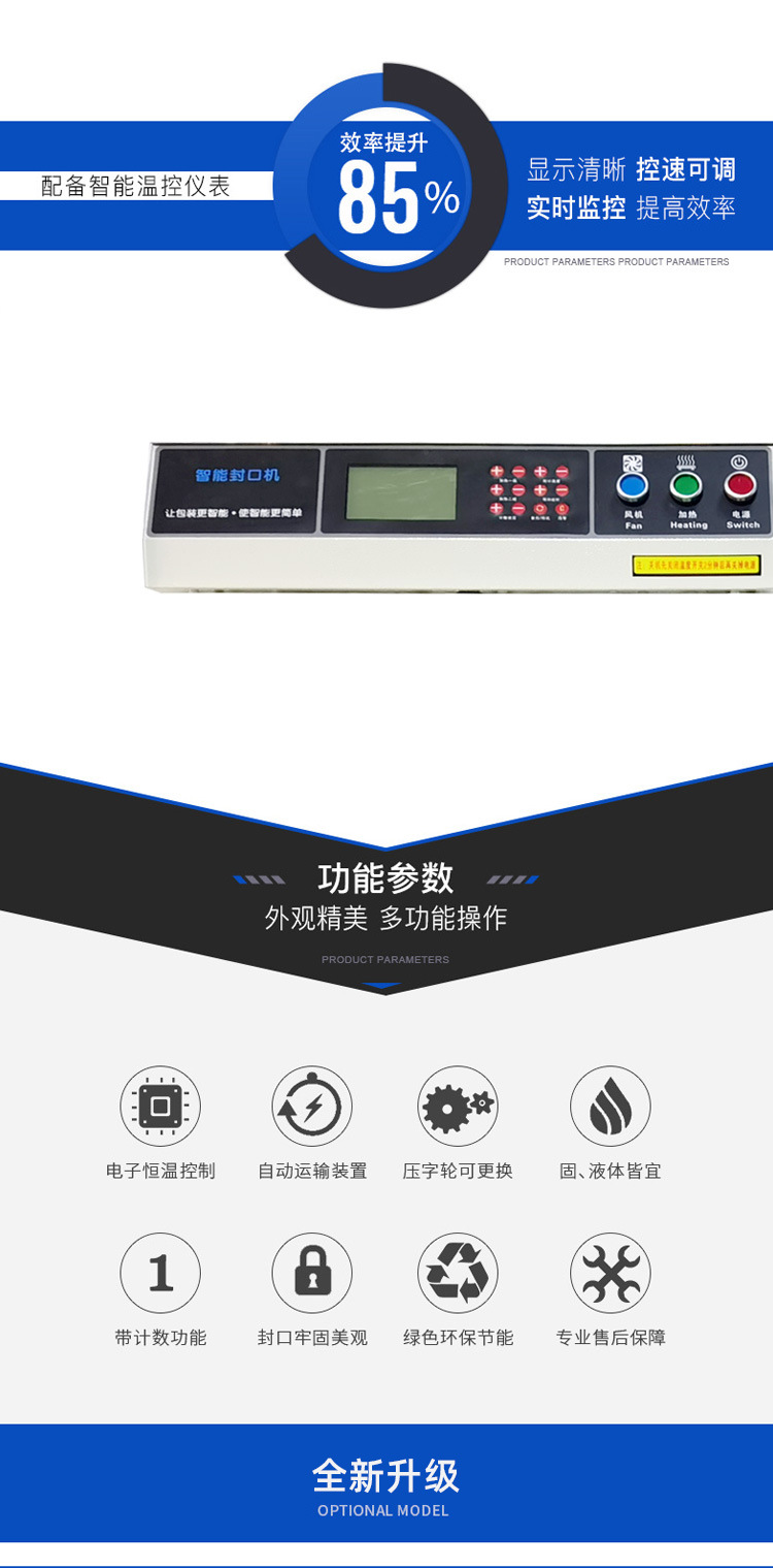 它的工作原理基于加熱和壓力的協同作用。當待封口的物品通過傳送裝置進入封口區域時,加熱元件迅速升溫,使封口材料達到熔點,同時施加適當的壓力,使封口處緊密貼合,從而完成封口過程。