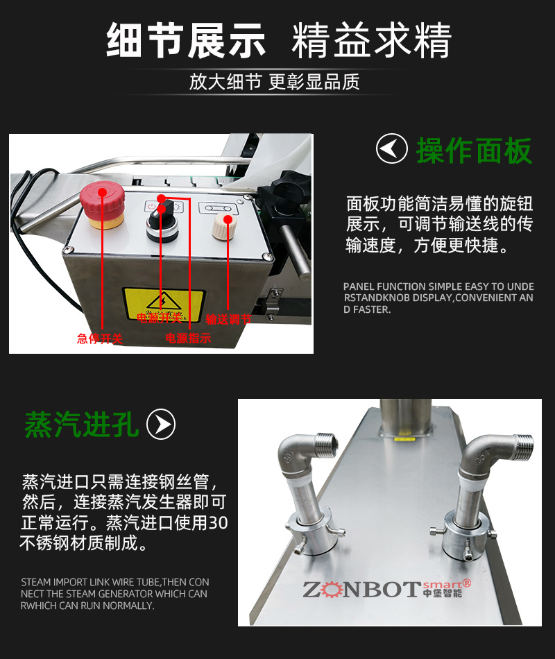 1. 溫度可調(diào)節(jié):可以根據(jù)不同的包裝材料和產(chǎn)品要求,精確調(diào)節(jié)蒸汽溫度,確保收縮效果的同時(shí)避免過(guò)度收縮或收縮不足。