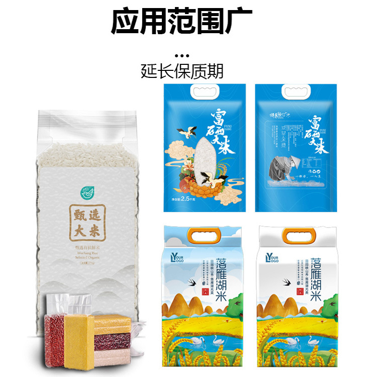 • 降低了包裝袋內(nèi)的濕度。在正常環(huán)境下,空氣濕度可能會(huì)使大米受潮,進(jìn)而引發(fā)霉菌滋生。真空包裝去除了大部分空氣,也就減少了水分進(jìn)入的可能性。同時(shí),霉菌的生長(zhǎng)需要氧氣,真空環(huán)境也能抑制霉菌的繁殖,從而延長(zhǎng)了大米的保質(zhì)期,確保大米在儲(chǔ)存和運(yùn)輸過(guò)程中的品質(zhì)。