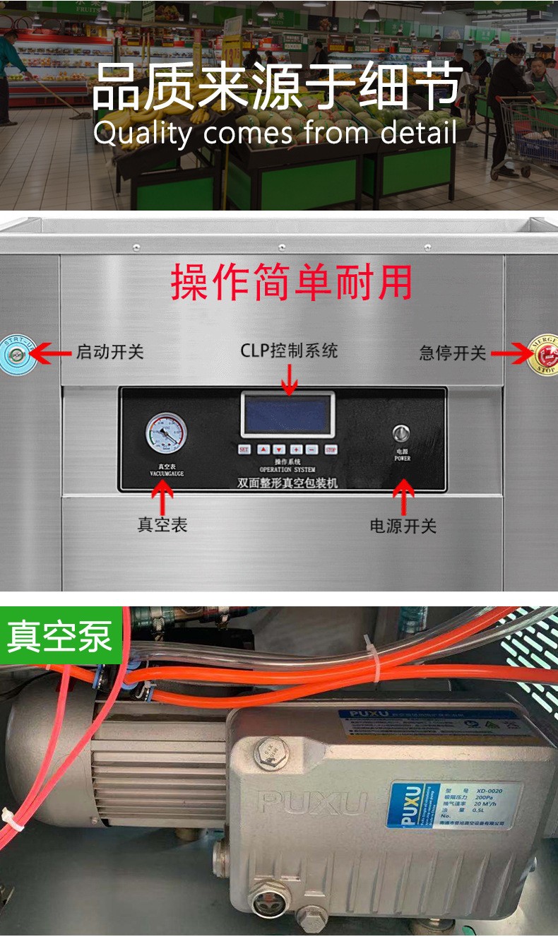 • 一般有控制面板和控制電路。控制面板上有各種操作按鈕和顯示屏,操作人員可以通過(guò)它來(lái)設(shè)置包裝參數(shù),如真空度、整形時(shí)間、封口溫度和時(shí)間等。控制電路則負(fù)責(zé)協(xié)調(diào)各個(gè)部件的工作,確保機(jī)器按照設(shè)定的程序有序運(yùn)行。