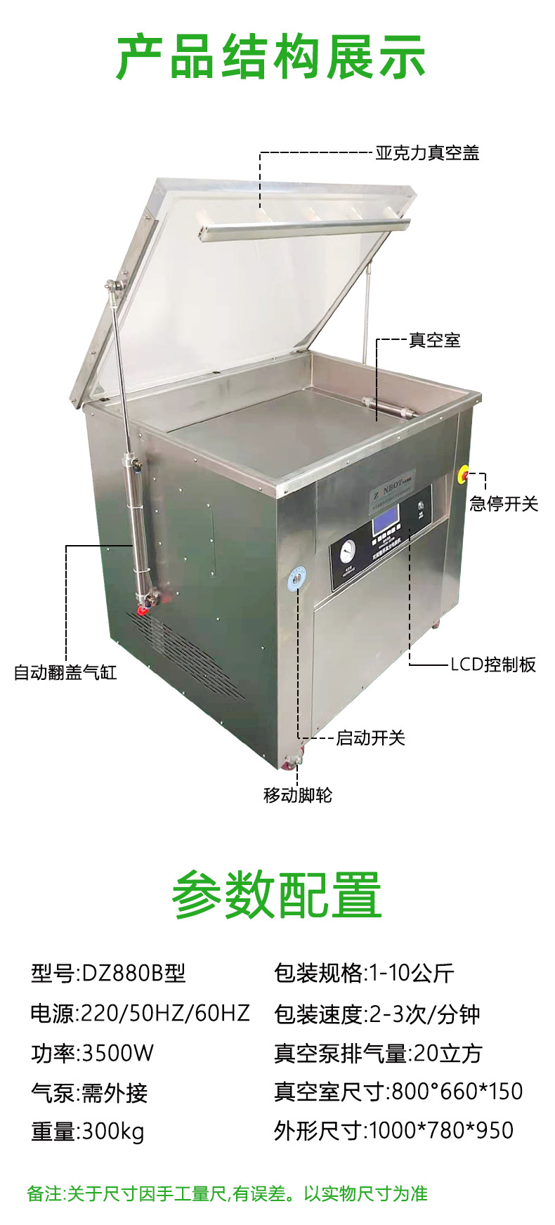 • 主要由真空泵、真空管道和真空室組成。真空泵是核心部件,負(fù)責(zé)抽取空氣以形成真空環(huán)境。常見(jiàn)的真空泵有旋片式真空泵和水環(huán)式真空泵。真空管道將真空泵和真空室連接起來(lái),確保空氣的順利抽出。真空室則是放置包裝袋的區(qū)域,其密封性良好,以保證抽真空的效果。