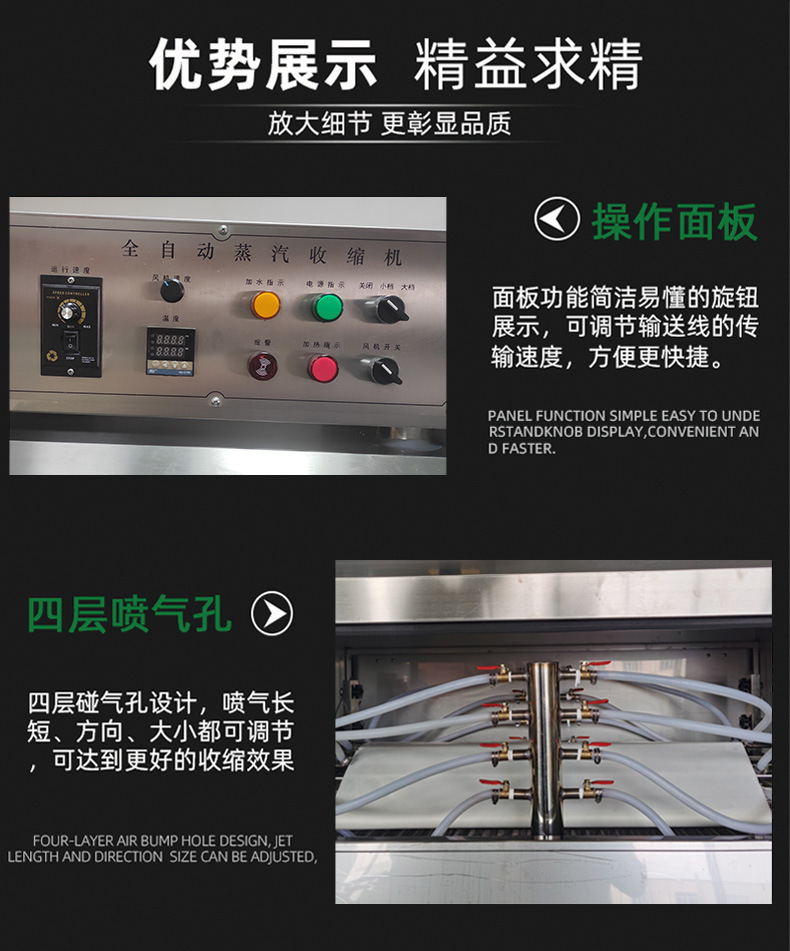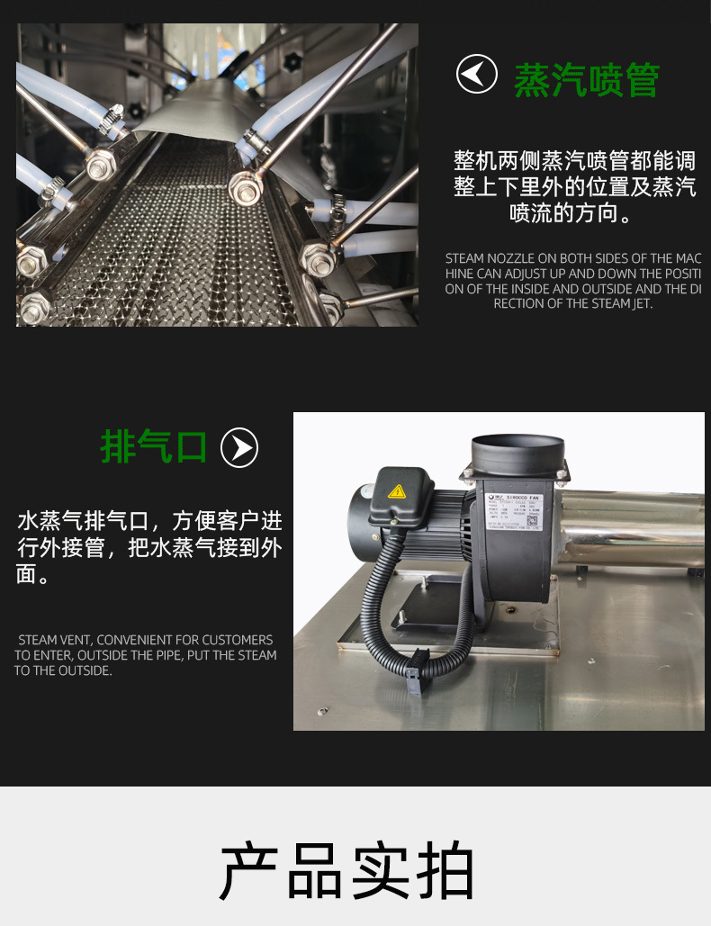• 是對(duì)薄膜包裹的物品進(jìn)行蒸汽加熱的特定空間。設(shè)計(jì)要確保蒸汽能均勻噴灑或籠罩在物品上,實(shí)現(xiàn)薄膜均勻收縮效果。通常配備溫度和壓力控制裝置,用于調(diào)節(jié)和監(jiān)測(cè)蒸汽的溫度和壓力,保證加熱過程符合包裝要求。