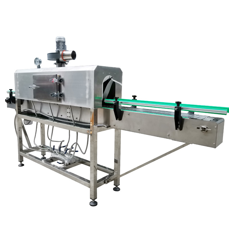 針對性設計:椰子蒸汽收縮機是專門為椰子包裝而設計的設備。由于椰子的形狀不規則(近似圓形,且有一定的弧度和表面紋理),這種收縮機的熱收縮通道和蒸汽噴頭布局會進行特殊優化。例如,蒸汽噴頭的角度可能會被調整,以確保蒸汽能夠均勻地覆蓋椰子表面的各個部分,包括椰子的頂部、底部和側面。