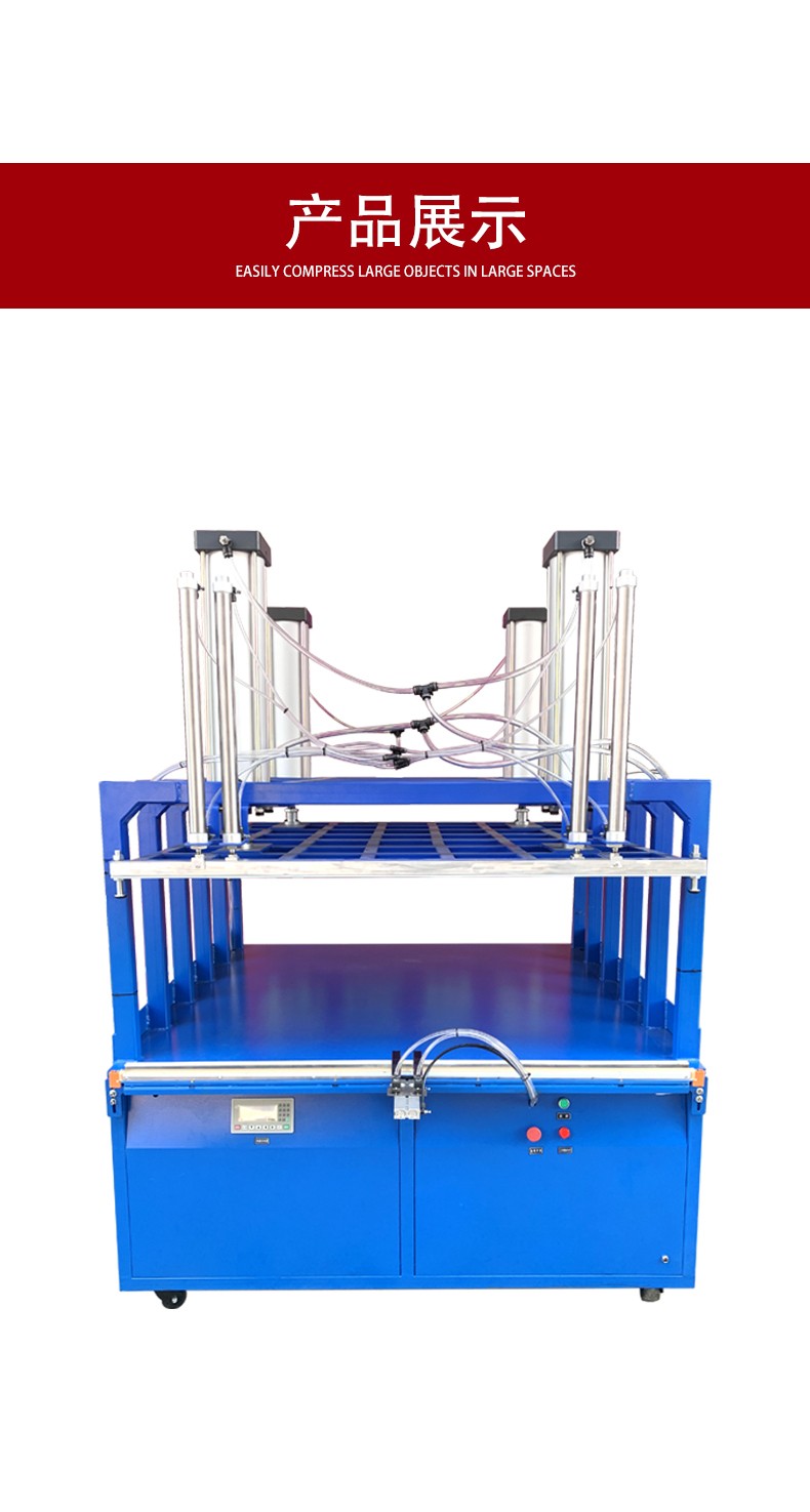 • 壓縮操作(如果有此功能):對于具備壓縮功能的機器,在抽完真空后,壓縮裝置開始工作。它通過機械力對真空袋內的物品進行擠壓,使物品的體積進一步減小。這個過程通常是通過上下或左右的壓板來實現(xiàn)的,壓板的壓力可以根據(jù)物品的特性和期望的壓縮程度進行調整。