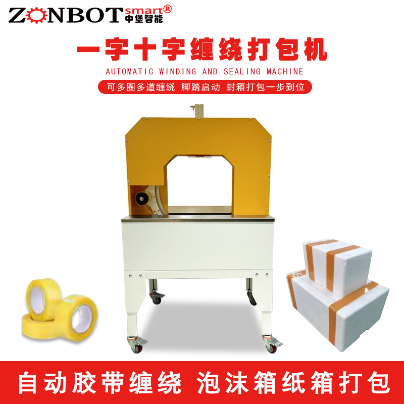 膠帶纏繞機是一種用于將膠帶自動纏繞在產品或包裝上的設備。它的主要功能是通過機械裝置控制膠帶的釋放和纏繞動作,從而高效、均勻地將膠帶包裹在目標物體的表面,起到固定、密封、保護或標識等作用。例如,在物流行業,它可以對紙箱進行纏繞,增強紙箱的牢固程度,防止在運輸過程中散開;在生產車間,可對一些零部件進行纏繞,起到防護作用。