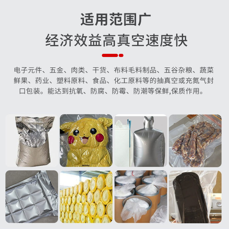 • 包裝效果好:能夠?qū)崿F(xiàn)高效的抽真空和密封功能,使包裝內(nèi)的物品處于真空狀態(tài),有效防止物品受潮、受腐蝕氣體及鹽霧侵蝕,延長物品的保質(zhì)期和使用壽命2。