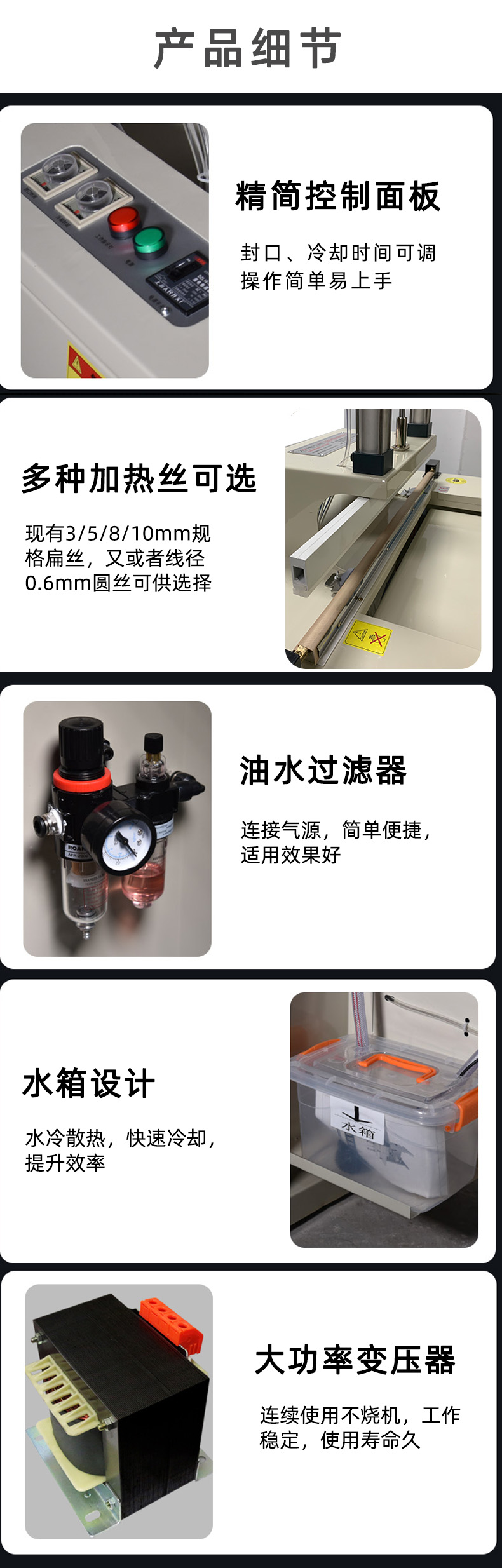 氣動水冷封口機商用全自動塑料薄膜鋁箔袋無紡布上下加熱封切機