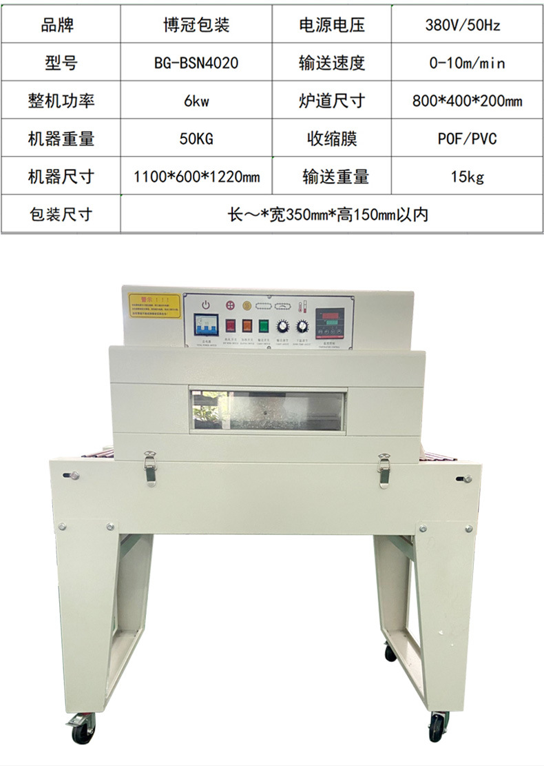 熱收縮機采用的進口材料,保證了產(chǎn)品的質(zhì)量和性能,使您的產(chǎn)品在收縮包裝后,更耐用、更美觀,更具市場競爭力。