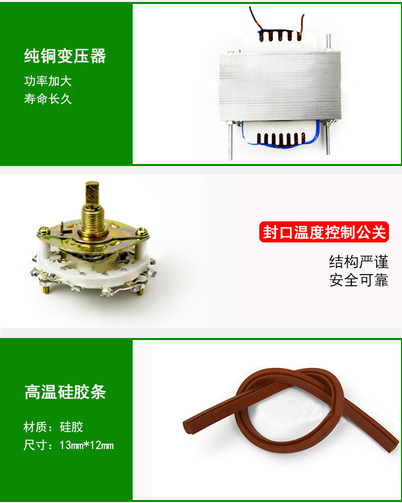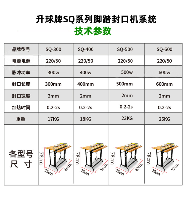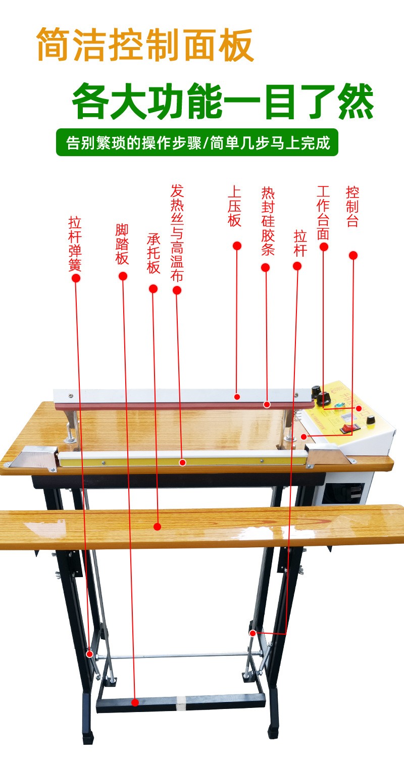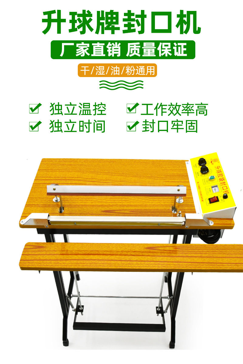 腳踏封口機(jī)利用電氣脈沖技術(shù),使原有的工作時間從2-4秒縮短為0.2秒,是一種投資少,效益高,封口長度長,操作簡單,含專利的高效益封口設(shè)備,能廣泛用于食品,醫(yī)藥,土特產(chǎn),電器軟件,工廠,商店,服務(wù)行業(yè)。