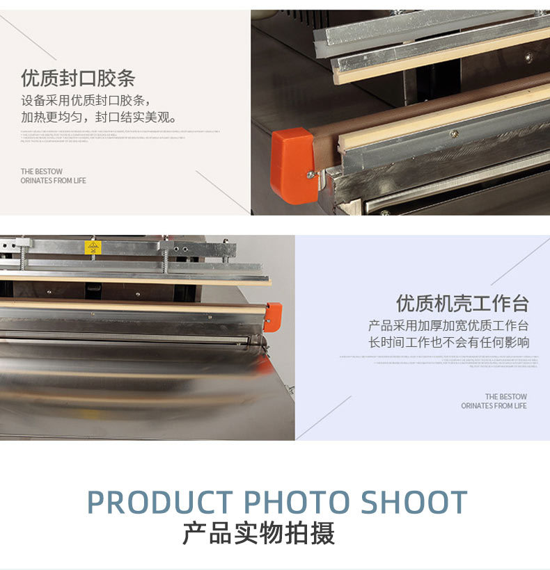 食品真空包裝機對香腸、肉制品、餅干等食品進行真空包裝。經過包裝后的食品可以防止霉變,保質、保鮮而延長產品的儲存期限,只需按動真空蓋可自動完成抽真空、封口。