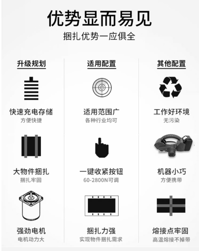 手搖式免扣打包機是一種便捷的包裝設備,主要用于物品的捆扎和打包。它采用免扣設計,無需使用額外的扣件,即可實現包裝帶的緊密連接,從而提高打包效率并降低包裝成本