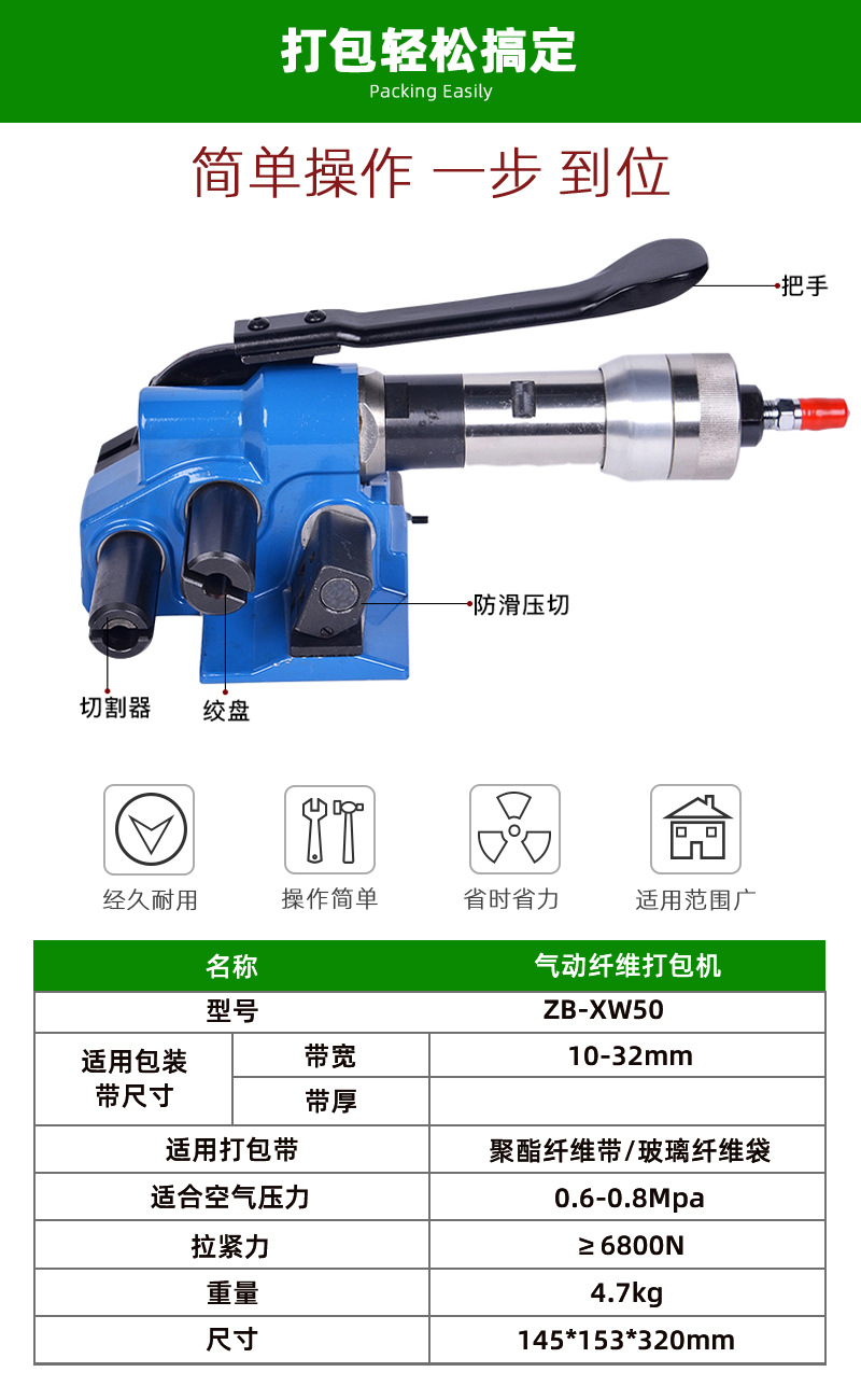 XW50手持式打捆機聚酯纖維打包帶包裝機械 設(shè)備氣動纖維帶打包機