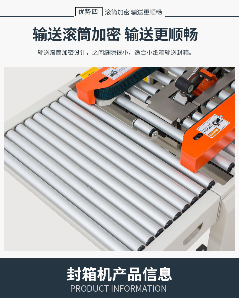 封箱機主要適用于紙箱的封箱包裝,既可單機作業(yè),也可與流水線配套使用,它可單箱作業(yè),也可與紙箱成型開箱機、裝箱機、貼標(biāo)機、捆包機、棧板堆疊機、輸送機等設(shè)備配套成包裝流水線使用,為包裝流水線作業(yè)必須的設(shè)備