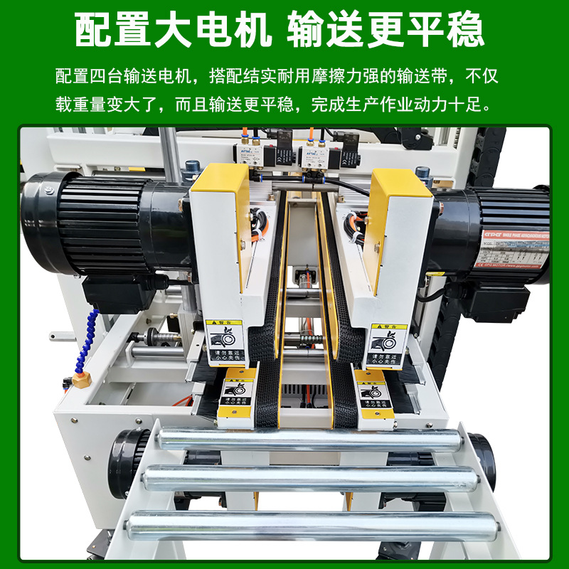 總而言之,自動折蓋封箱機適用于各種商品包裝的自動化生產線,能大大提高生產效率和包裝質量。