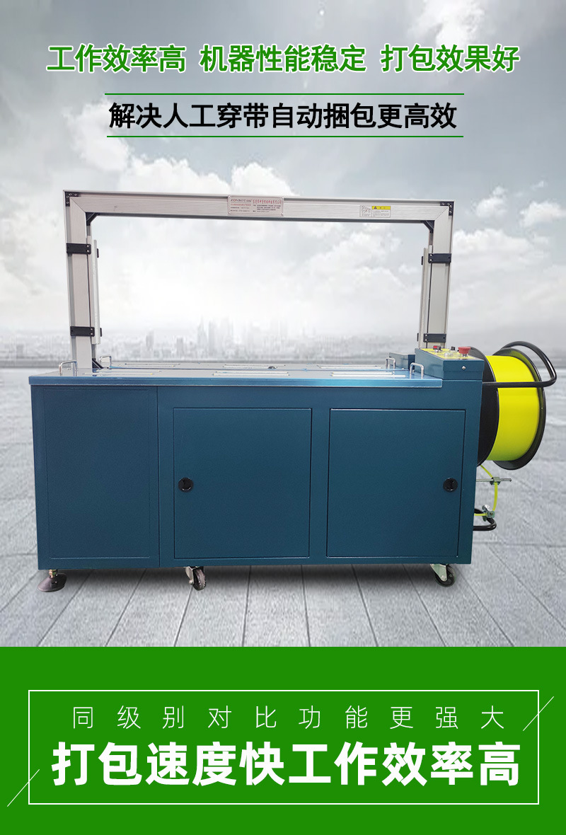 打包機又稱捆包機、打帶機或捆扎機,是使用捆扎帶捆扎產品或包裝件,然后收緊并將兩端通過發熱燙頭熱融粘接方式結合。打包機的功能是加固包裝物品的,使物品在搬運過程中、貯存中不因捆扎不牢而散落,同時還應捆扎整齊美觀。