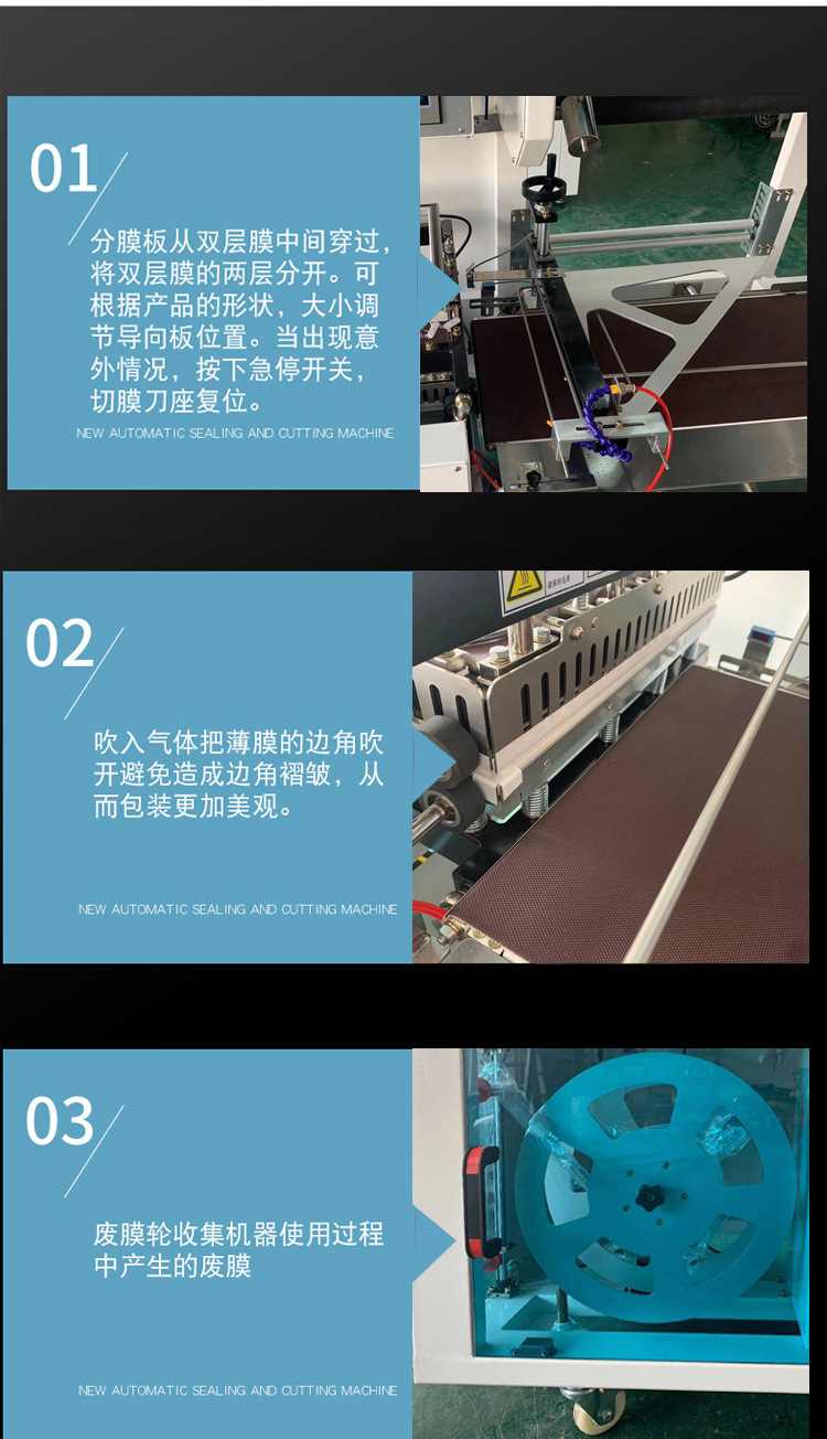 全自動封切機適用于需要四面密封的食品,飲料,罐頭,酒,日化,日用品等產品的集體包裝,包裝后的產品具有美觀,防潮,防塵,防破損等優勢。