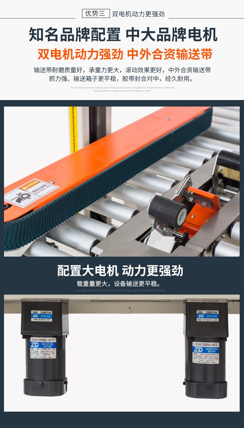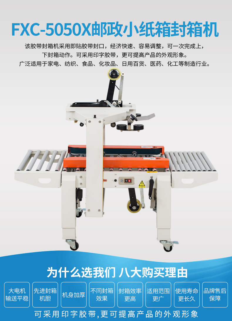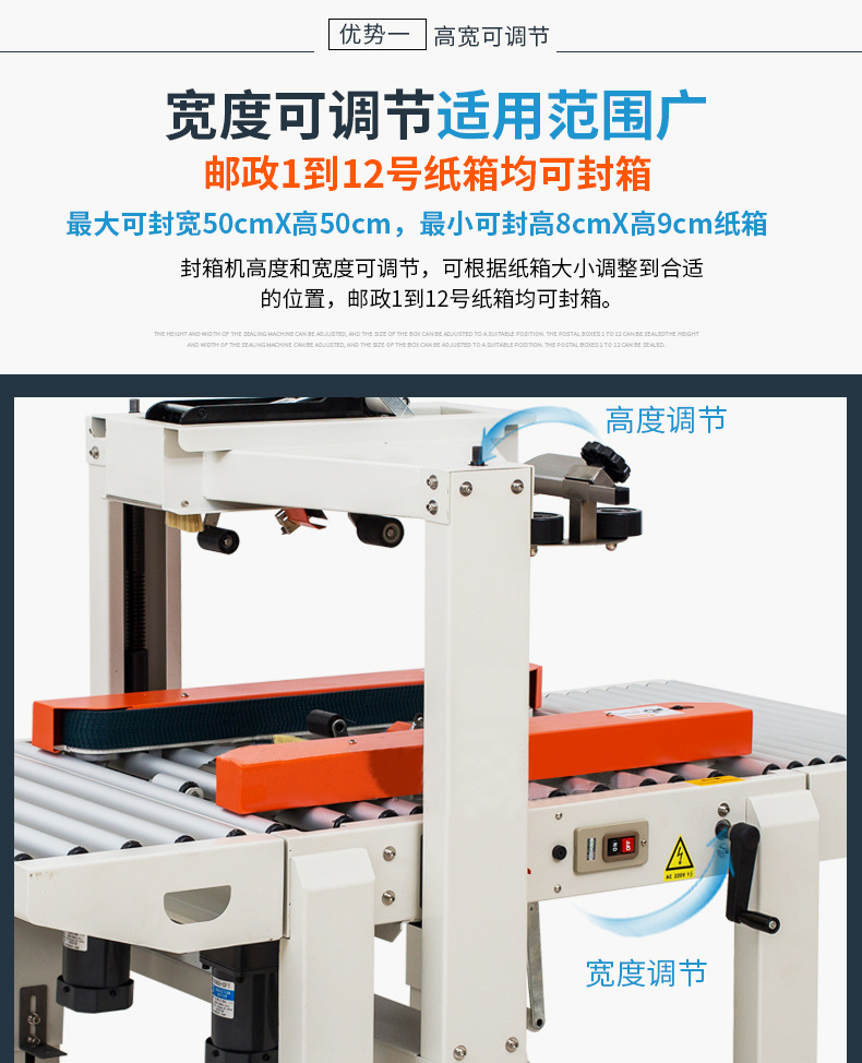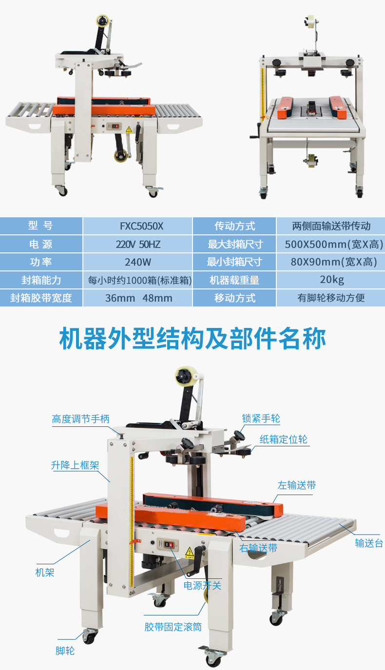 封箱機主要適用于紙箱的封箱包裝,既可單機作業(yè),也可與流水線配套使用,它可單箱作業(yè),也可與紙箱成型開箱機、裝箱機、貼標(biāo)機、捆包機、棧板堆疊機、輸送機等設(shè)備配套成包裝流水線使用,為包裝流水線作業(yè)必須的設(shè)備。