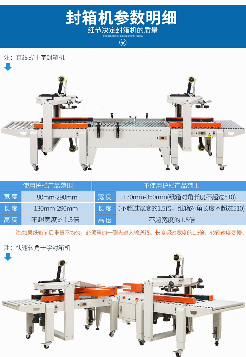封箱機,也稱為Case sealer machine,主要用于紙箱的封箱包裝。它們不僅適用于單機作業(yè),也可以與流水線配套使用,是包裝流水線作業(yè)中不可或缺的設(shè)備。封箱機的功能包括自動折疊、粘合和封口紙箱,通過先進的感應(yīng)和控制技術(shù),能夠自動檢測和調(diào)整紙箱尺寸,按照設(shè)計要求進行折疊和封口操作,大大提高了包裝的效率和一致性,減少了人工操作的錯誤和勞動強度。