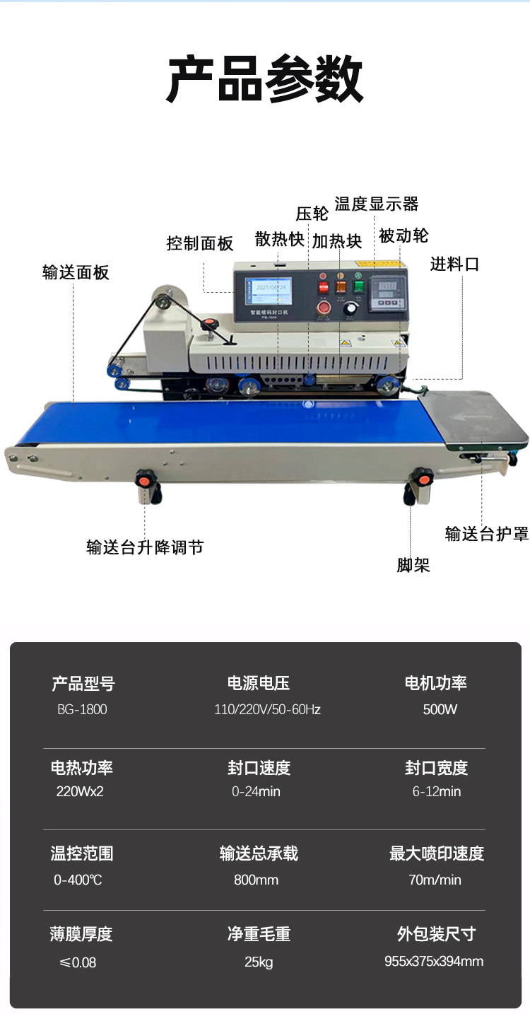 連續式噴碼封口機適用于醫藥、?農藥、?食品、?日化、?潤滑油等行業。?這種設備特別適用于鋁箔袋、?塑料袋、?復合袋的封口,?是這些行業中常用的包裝設備。?連續式噴碼封口機具有封口牢固、?功效高、?結構簡單緊湊、?體積小、?造型美觀、?技術先進、?功耗低以及操作維修保養方便等優點,?因此被廣泛用于食品、?醫藥、?化妝品、?日常用品等行業的包裝過程中。?在生產過程中,?連續式噴碼封口機需要每天更換生產日期以確保產品質量和安全,?符合食品衛生法規定,?是一種理想的封口機械。?此外,?該設備還可以根據需要更換日期、?批號,?使用方便,?能夠滿足不同行業的需求