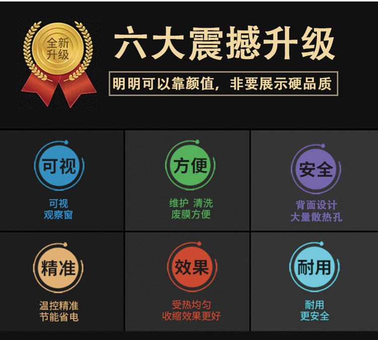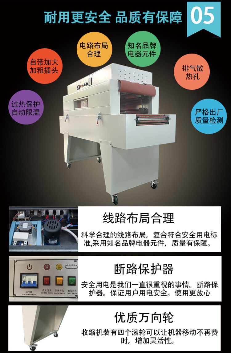 - 加熱功率:根據(jù)生產(chǎn)需求選擇合適的加熱功率,以確保快速高效地完成收縮工作。